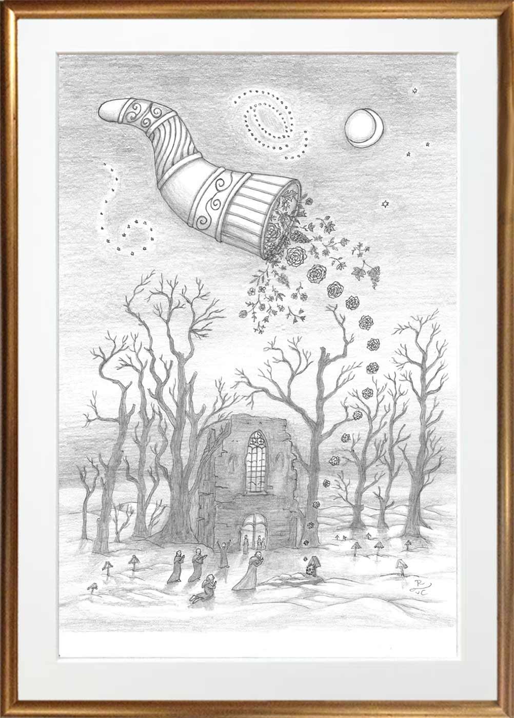 Motiv aus einem Bilder-Zyklus zu 10 Caspar-David-Friedrich-Gemälden. Jede dieser Zeichnungen der Meta-Romantik trägt etwas ‚Übergeordnetes‘ in sich, eine neue Perspektive, etwas Außergewöhnliches, das die ursprüngliche Szenerie bei Caspar David Friedrich sprengt.