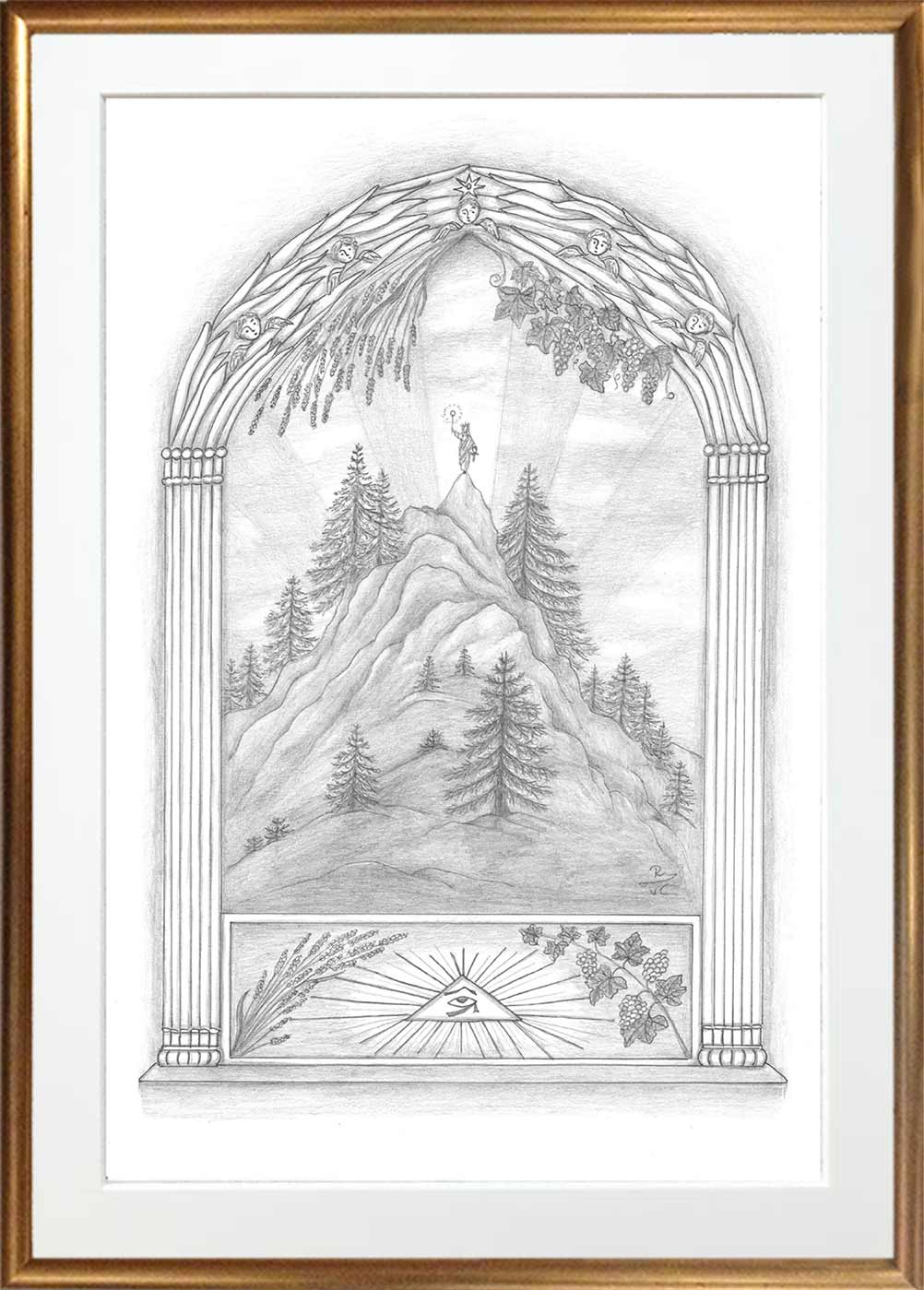 Motiv aus einem Bilder-Zyklus zu 10 Caspar-David-Friedrich-Gemälden. Jede dieser Zeichnungen der Meta-Romantik trägt etwas ‚Übergeordnetes‘ in sich, eine neue Perspektive, etwas Außergewöhnliches, das die ursprüngliche Szenerie bei Caspar David Friedrich sprengt.